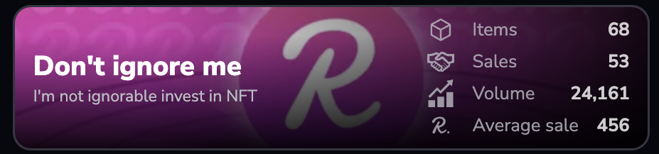 Securing the third spot is the captivating collection called Don't Ignore Me, with an impressive 53 NFT sales on Sqwid. These NFTs embody thought-provoking concepts and visually striking imagery. With an average sale price of 456 $REEF, this collection offers a unique narrative that invites viewers to explore the depths of their emotions.